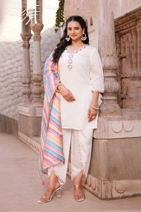 Embroidered Kurta, Dhoti Pant & Dupatta Set